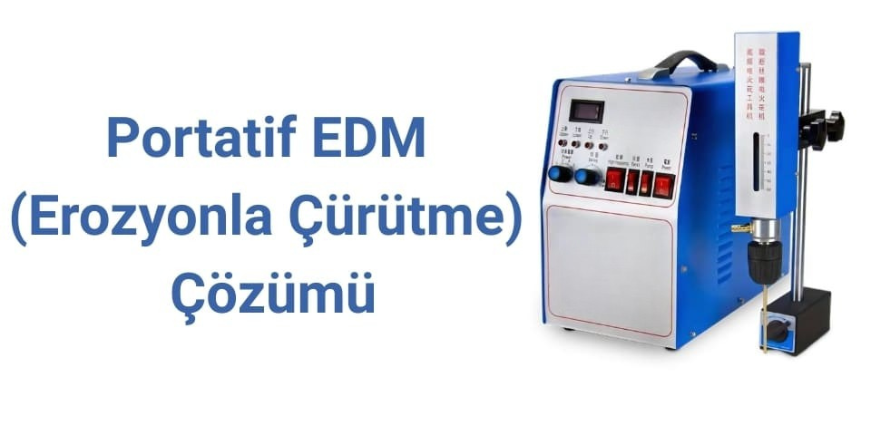 Taşınabilir (seyyar) ve Kullanımı Çok Pratik Erozyon (EDM) Yöntemiyle Çürütme Makinesi Özellikle büyük ebatlı iş parçalarında veya özel makine ve kalıplarda, bağlantı amaçlı deliklerin, vidaların açılması esnasında kullanılan MATKAP, , KILAVUZ ve RAYBALARIN kullanımı uygulamasında kırılan ve çıkarılması güçleşen, HSS, Titanyum kaplamalı veya Karbür vs gibi, çok sert malzeme yapısına sahip bu matkap ve klavuzların çıkarılması çok güç ve hatta imkansız hale geldiğinde, çözüm arayışı içine gireriz.